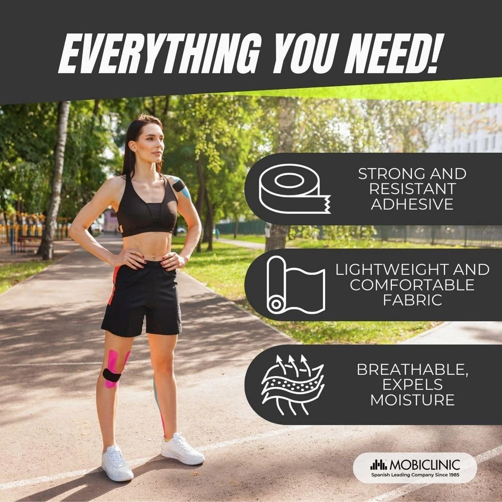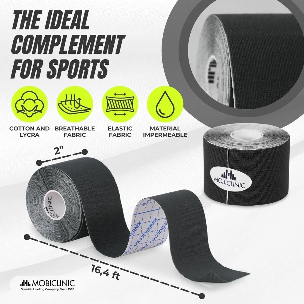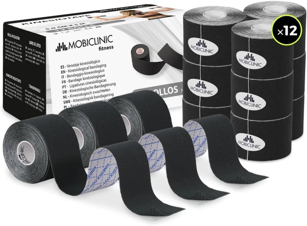 Mobiclinic Kinesiology Tape 12 Rolls Black 5m x 5cm Sports Muscle Support
