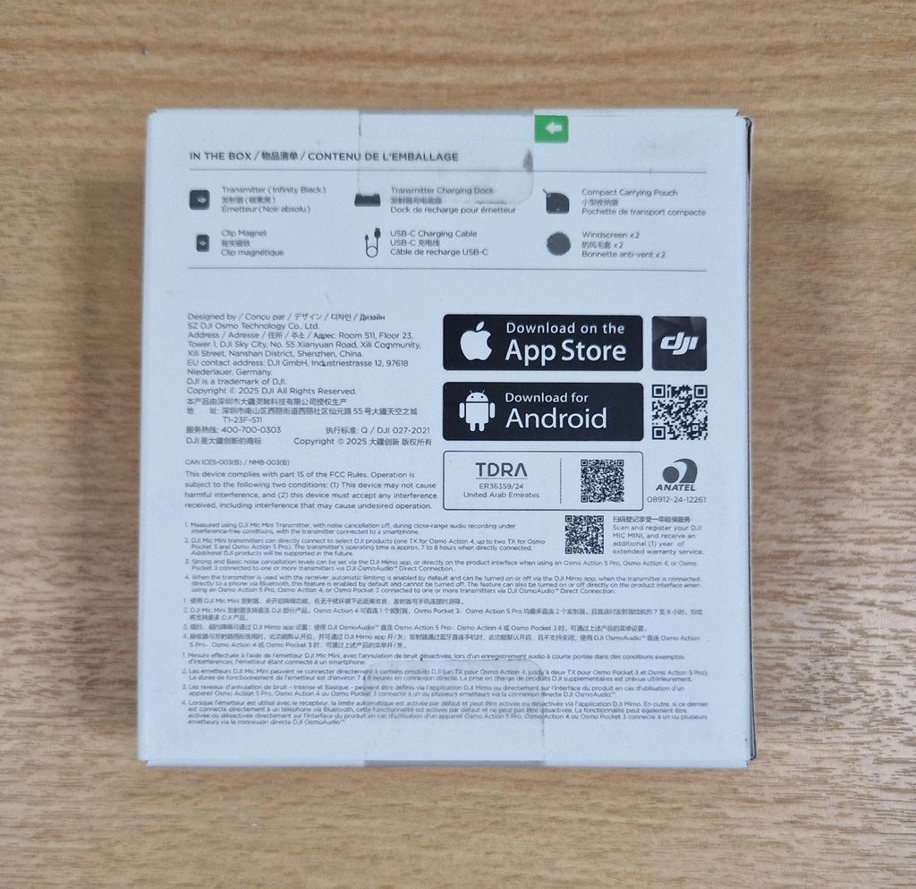 one DJI Mic Mini Transmitter ( Infinity Black), and other accessories. Connects directly to mobile phones via Bluetooth and to Action 5 Pro, Action 4, and Pocket 3 directly via OsmoAudio.